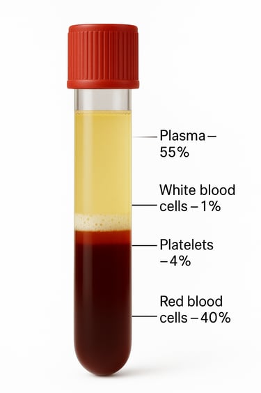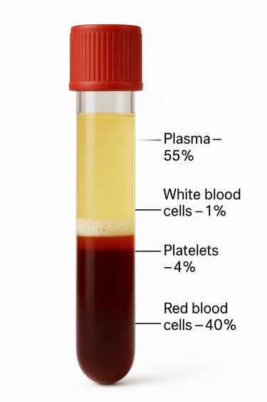 A centrifuged blood sample showing the composition of blood: