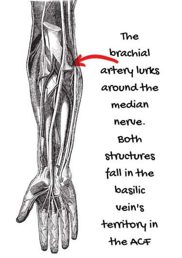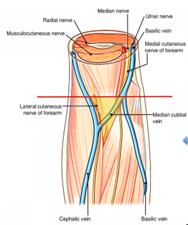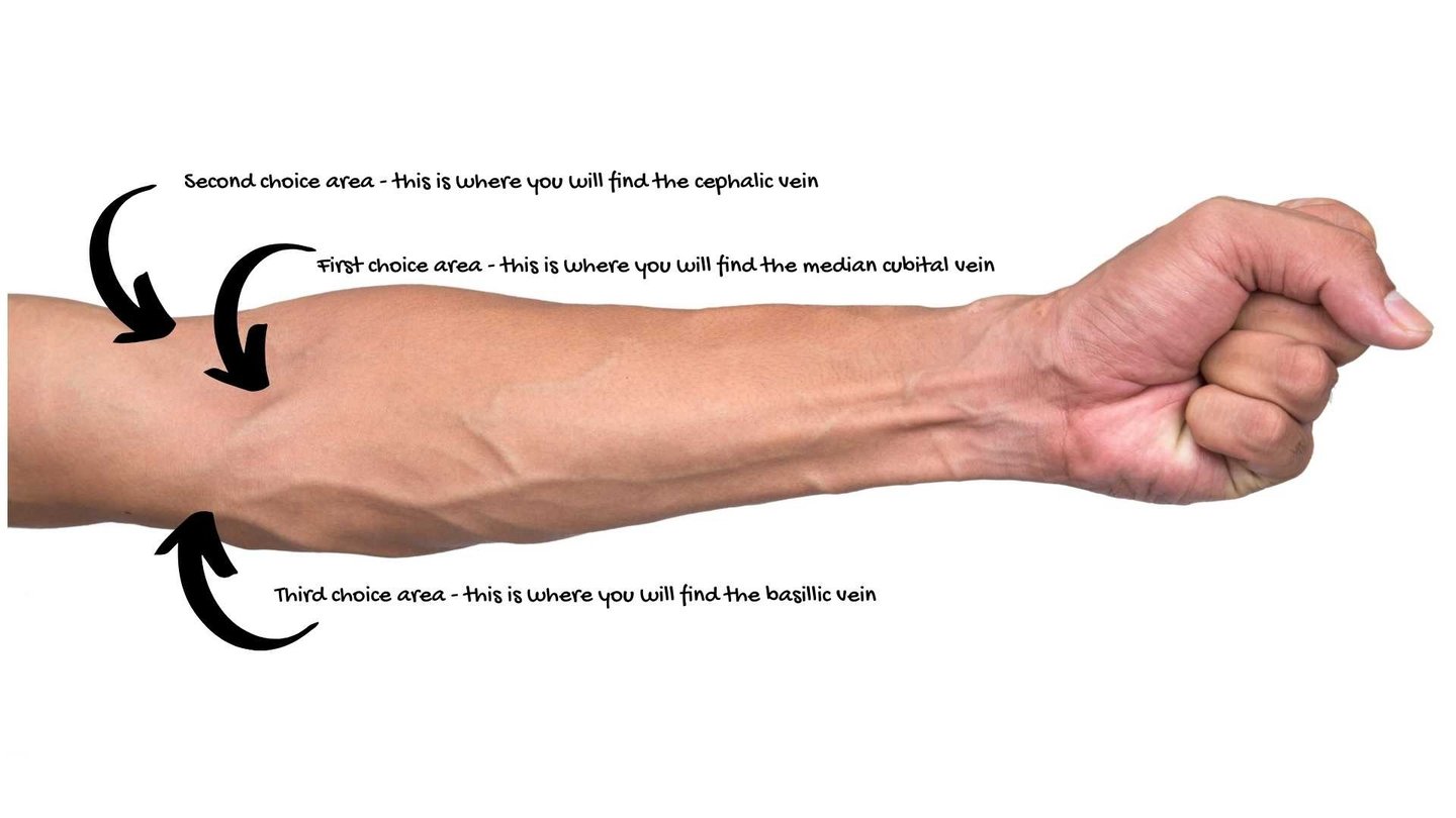 The best option: Always try for median cubital first so CHECK BOTH SIDES even if there is a prominent cephalic/basillic.